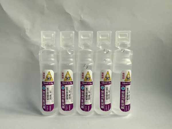 【用法用量】本品不得直接靜脈注射,未經稀釋不得進行靜脈滴注。每1g氯化鉀的含鉀量為13.4mmol。用于嚴重低鉀血癥或不能口服者。一般用法將10%氯化鉀注射液10~15m加入5%葡萄糖注射液500ml中滴注。補鉀劑量、濃度和速度根據臨床病情和血鉀濃度及心電圖缺鉀圖形改善而定。鉀濃度不超過3.4g/L(45mmol/L),補鉀速度不超過0.75g小時(10mmol/小時),每日補鉀量為3~4.5g(40~60mmol)。在體內缺鉀引起嚴重快速室性異位心律失常時,如尖端扭轉型心室性心動過速、短陣、反復發作多行性室性心動過速、心室撲動等威脅生命的嚴重心率失常時,鉀鹽濃度要高(0.5%,甚至1%),滴速要快,1.5g/小時(20mmol/小時),補鉀量可達每日10g或以上。如病情危急,補鉀濃度和速度可超過上述規定。但需嚴密動態觀察血鉀及心電圖等,防止高鉀血癥發生。小兒劑量每日按體重0.22g/kg(3mmol/kg)或按體表面積3g/m'計算。在緊急情況下,氯化鉀應用0.9%氯化鈉注射液(除非存在禁忌癥)稀釋后給藥,而不應使用含葡萄糖的液體,因為葡萄糖可降低血清鉀水平。【不良反應】
