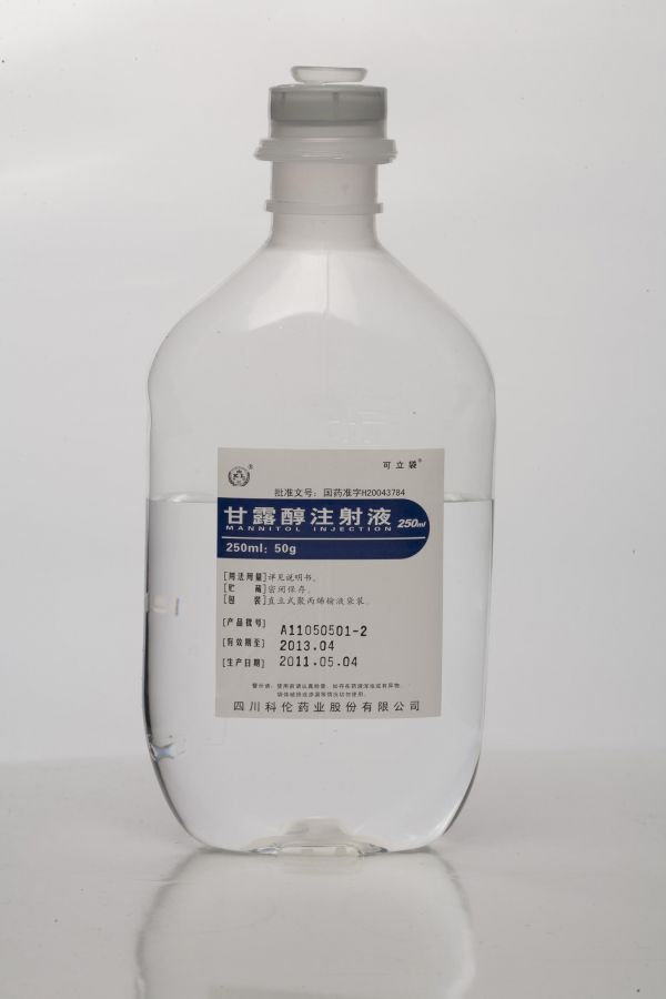 水腫,降低眼內(nèi)壓、顱內(nèi)壓和腦脊液容量及其壓力。1g甘露醇可產(chǎn)生滲透濃度為5.5mOsm,注射100g甘露